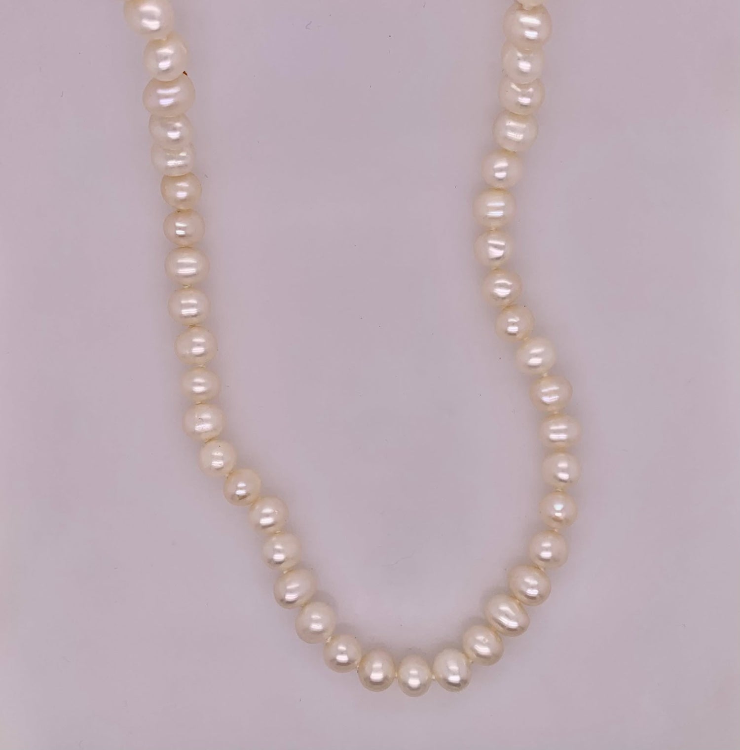 SOLD Mid-Century 32¡± 8.7mm Cultured Pearl Necklace w/Diamond Clasp c. 1960