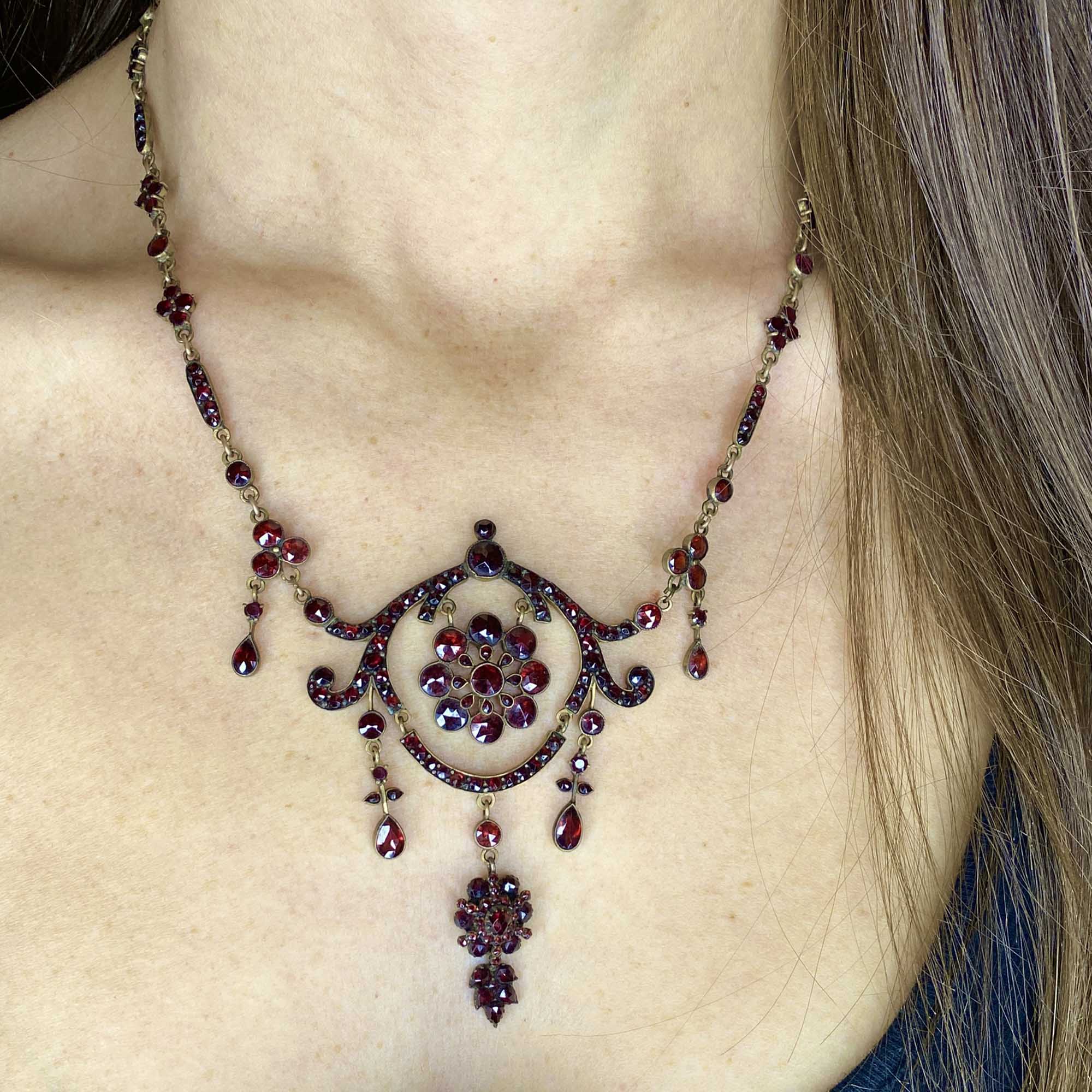 Antique Bohemian Garnet Pendant Necklace