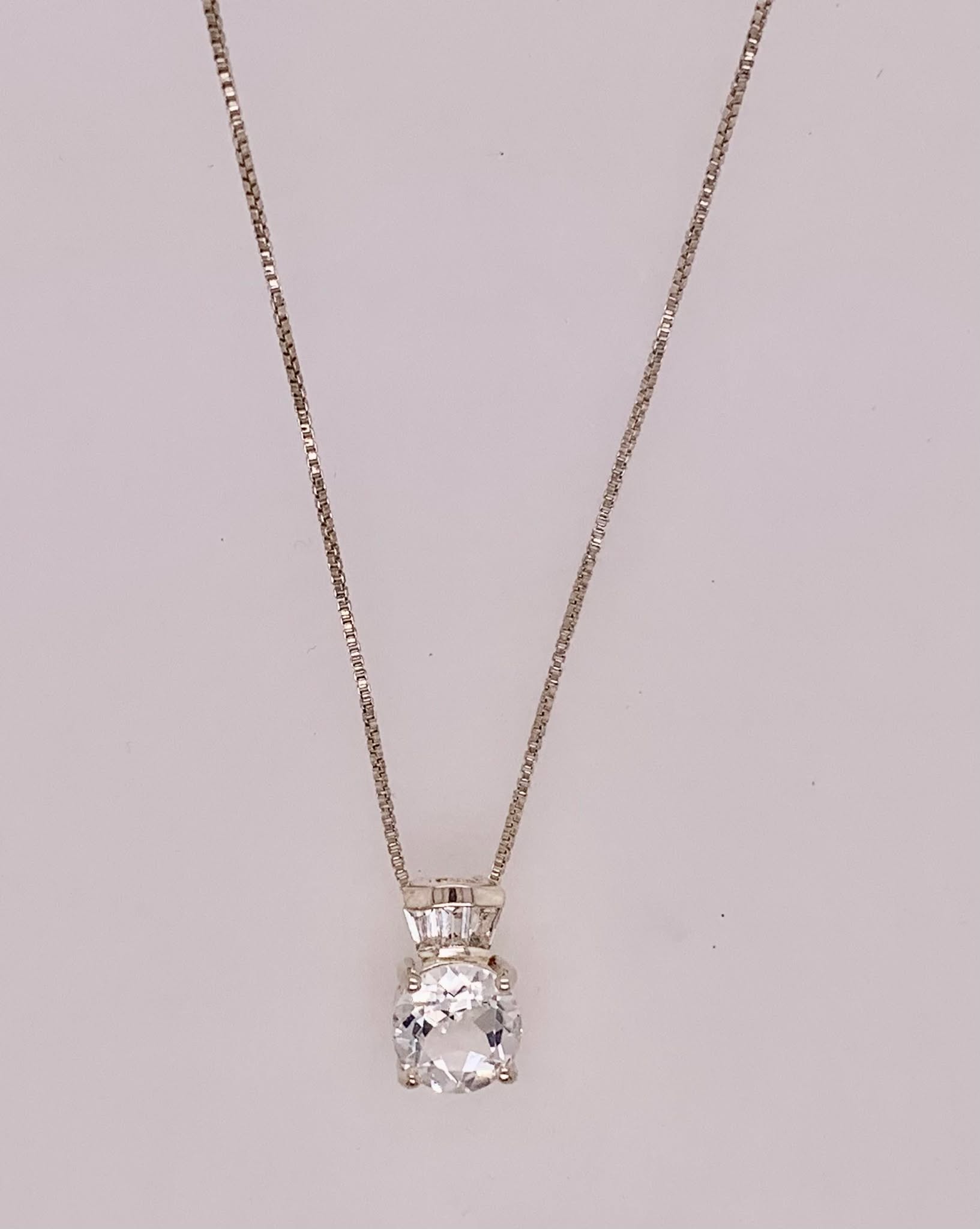 Estate sterling silver cubic zirconia solitaire and baguette necklace. Chain length: 18.